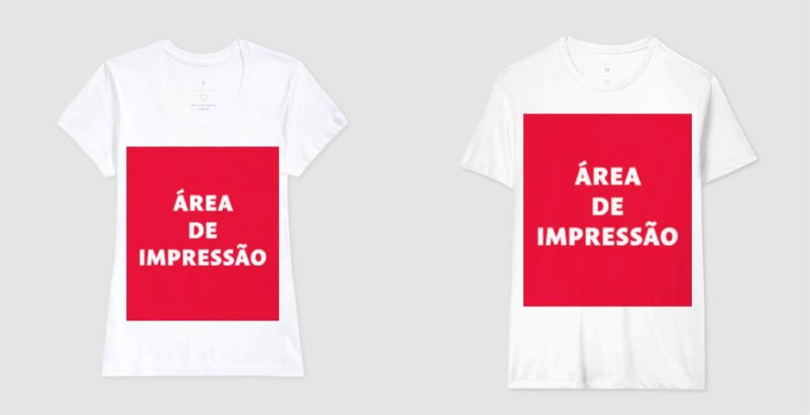** A imagem é apenas ilustrativa, por isso o tamanho da estampa na foto pode variar, porém as estampas seguem um tamanho aproximado de 35,5 cm de largura × 40,6 cm de altura nas camisas masculinas e 29,8 cm de largura × 34 cm de altura nas camisas femininas.